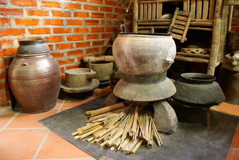 thời xưa gồm: bếp củi được làm từ ba cục đất sét nung tạo thành một