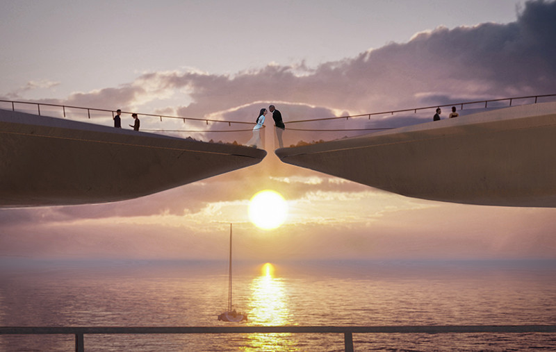 Phía Nam đảo, Thị trấn Hoàng hôn hứa hẹn “bùng nổ”, khi Sun Group ra mắt Cầu Hôn, công trình được thiết kế bởi “Đại sứ văn hóa Italy” Marco Casamonti. Cây cầu được lấy cảm hứng từ tích ông Ngâu bà Ngâu, với hai nhánh cầu tựa hai dải lụa mềm vươn mình ra giữa trùng khơi, sát lại gần nhưng không chạm vào nhau. Ranh giới nhỏ bé giữa hai nhánh cầu đó cũng chính là nơi ngắm hoàng hôn lộng lẫy buông xuống biển. Cầu Hôn kỳ vọng trở thành một biểu tượng, một công trình kiến trúc xoá nhoà mọi ranh giới về không gian và thời gian.