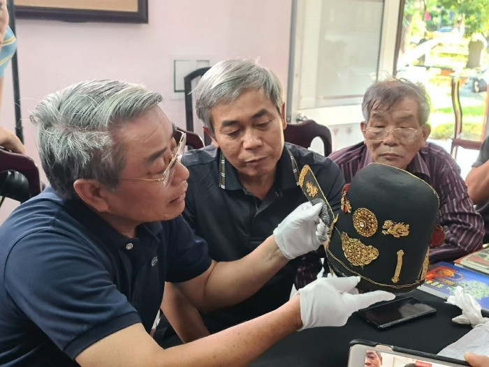 Giới chuyên môn đánh giá, chiếc mũ quan đại thần triều Nguyễn rất đẹp và gần như còn nguyên vẹn. Ảnh Balclis