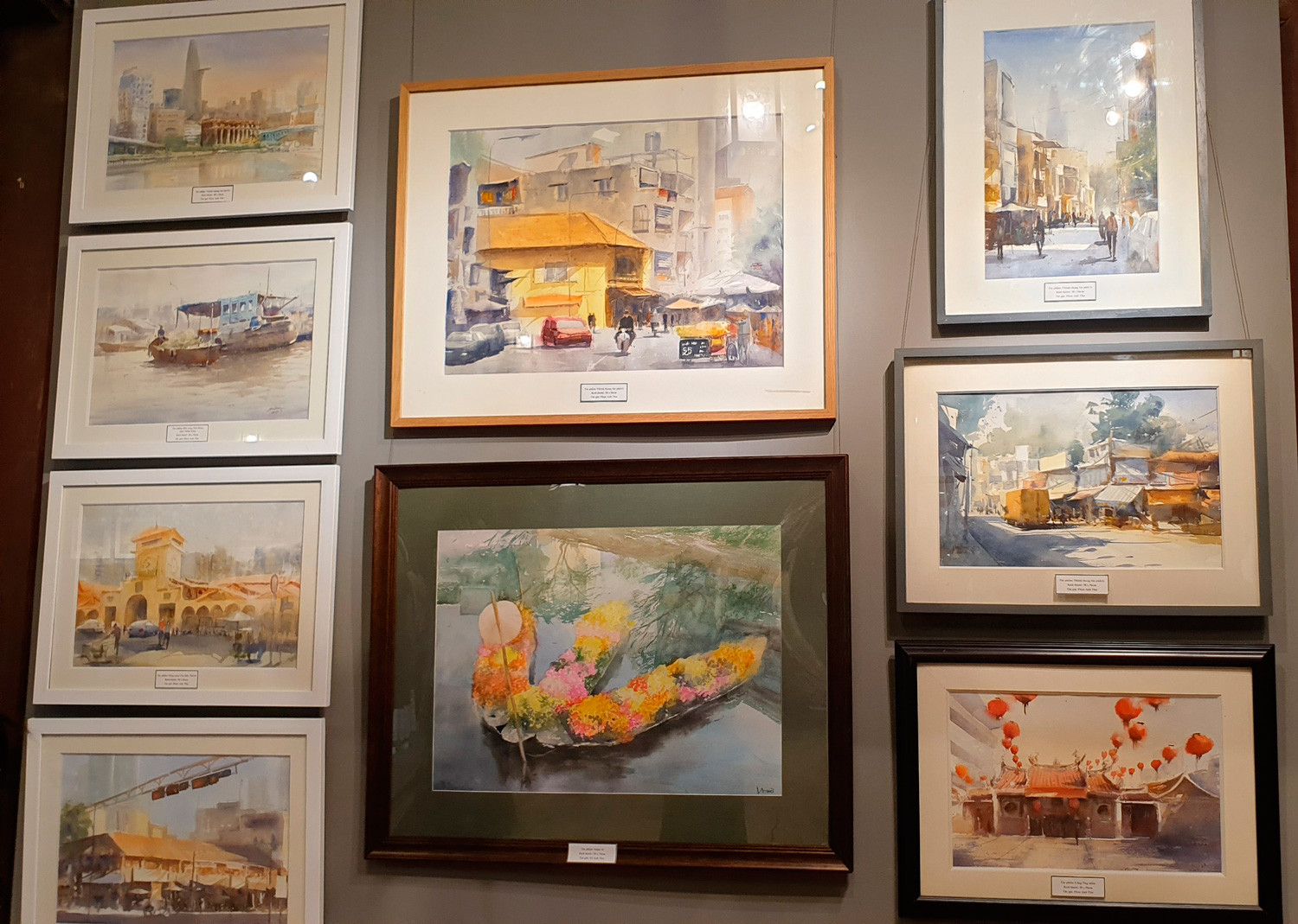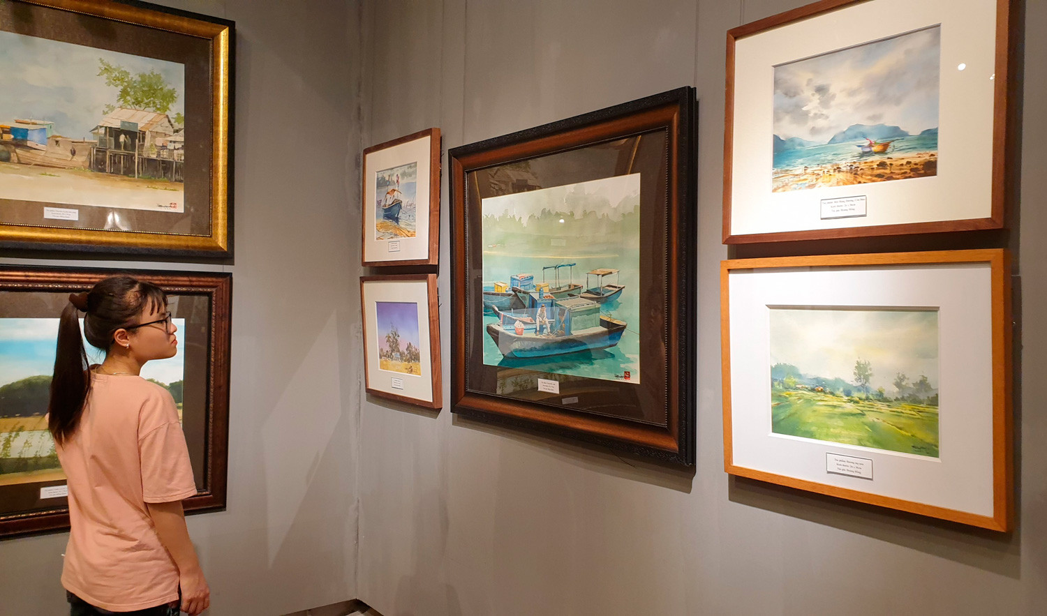 19 họa sĩ tới từ TP.HCM mang tới cho công chúng Thủ đô những góc nhìn đa chiều về quê hương, đất nước trong triển lãm 'Tranh màu nước Phương Nam'.