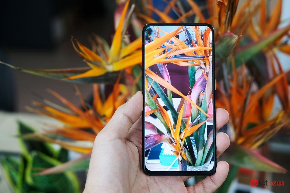 Điểm lợi lớn nhất của Reno Zoom 10x chính là camera ẩn bên trong thân máy, do đó có được màn hình tràn viền hoàn toàn. Ngược lại, Note 10 lẫn P30 Pro vẫn còn một nốt nhỏ bên trong màn hình để đặt camera trước. Tuy vậy, viền màn hình của Reno vẫn hơi dày hơn một chút so với Note 10.