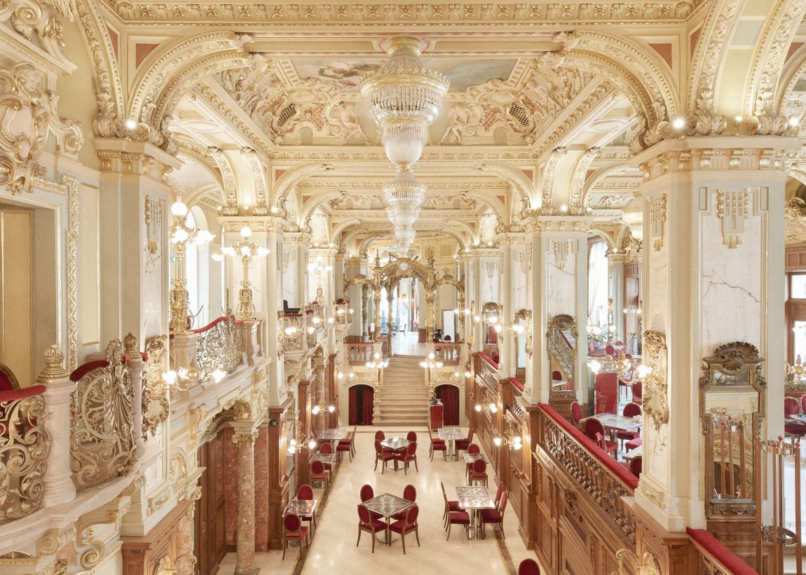 Trong khuôn viên quán cà phê còn có những tượng đài phun nước, đi sâu hơn nữa là các đèn chùm Venetian được chạm khắc tinh xảo. Nhiều người đã so sánh quán cà phê này như cung điện thứ hai của vua Bavarian Louis II. Thậm chí, đạo diễn Wes Anderson đã đến New York Café nhiều lần, lấy cảm hứng cho lối kiến trúc trong bộ phim The Grand Budapest Hotel của ông.
