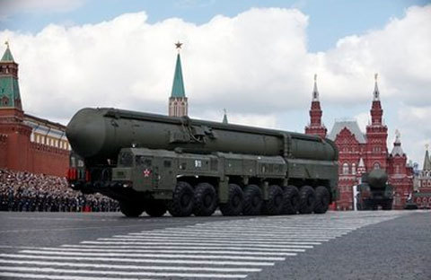 Tên lửa đạn đạo xuyên lục địa Topol của quân đội Nga diễu qua Quảng
