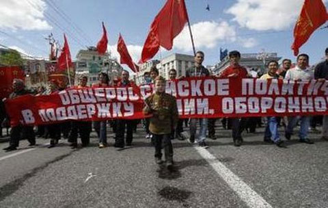 Những người cộng sản Nga kỷ niệm Ngày Chiến thắng ở Moscow. (Ảnh: Reuters)