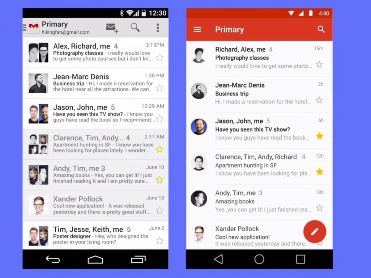 Android L muốn đồng nhất trải nghiệm Android trên điện thoại, máy tính bảng, đồng hồ thông minh thông qua ngôn ngữ thiết kế “Material Design”. Android L mới chỉ dành cho các lập trình viên song sẽ chính thức xuất hiện vào mùa thu năm nay.
