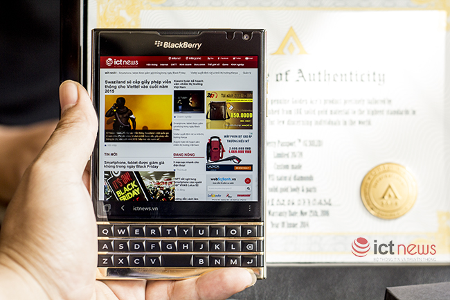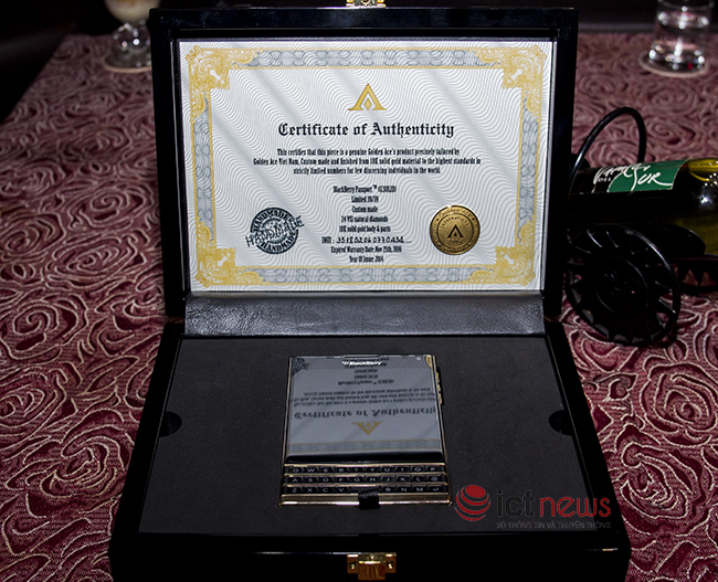 Với hệ thống khung viền được chế tác bằng vàng nguyên khối, sử dụng công nghệ cắt CNC để tạo hình theo đúng nguyên mẫu của chiếc Passport, ngoài ra các phím chức năng của máy còn được đính tổng cộng 24 viên kim cương tự nhiên theo tiêu chuẩn VVS1. Để sở hữu mẫu sản phẩm độc đáo này chủ nhân của nó đã phải chi ra 116 triệu đồng và 20 ngày chờ đợi để chiếc Passport này đến tay. Mời các bạn cùng theo dõi chùm ảnh mở hộp sản phẩm đặc biệt này do phóng viên của ICTNews thực hiện.