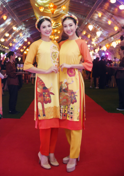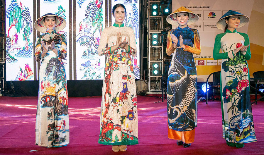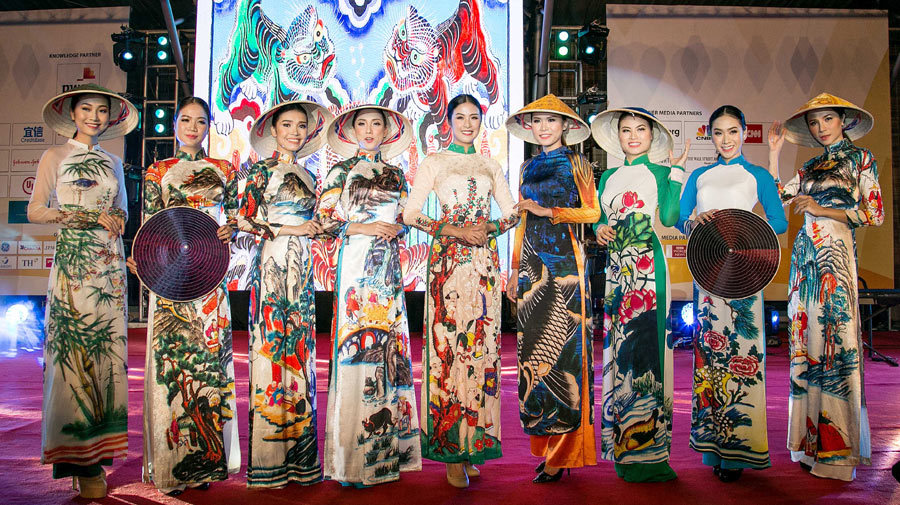 ![]() Các người đẹp trình diễn áo dài ở tiệc chào mừng APEC |