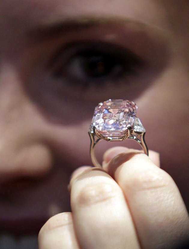 kim cương 24,78 carat màu hồng tuyệt đẹp này trước khi nó được đấu giá tại
