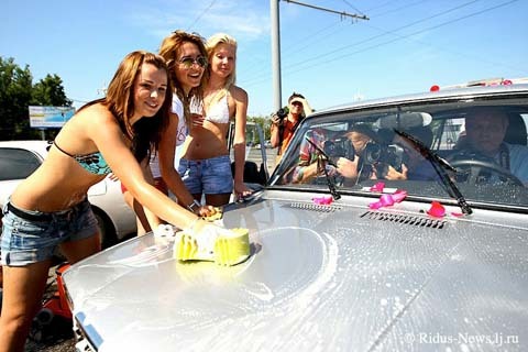Một nhóm các cô gái xinh đẹp đã tập hợp để rửa xe miễn phí cho những tài xế ở Thủ đô Matxcơva. Đây là nỗ lực nhằm hỗ trợ ngành công nghiệp ô tô của xứ sở Bạch Dương.