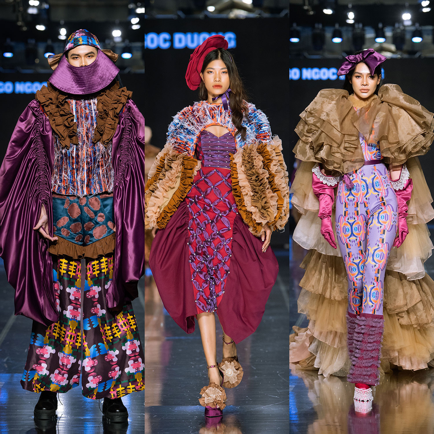 “Ỡm ờ" của NTK Minh Tâm lấy cảm hứng chủ yếu từ các tác phẩm văn học của Vũ Trọng Phụng. Nhà thiết kế đã kết hợp yếu tố trào phúng, châm biếm trong đó với trang phục truyền thống như áo dài, nón lá, nón quai thao.