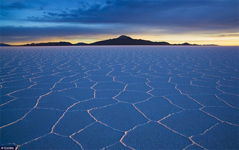 Tại sa mạc Uyuni, gần như không thể phân biệt được nơi nào bầu trời kết thúc và mặt đất bắt đầu từ đâu. Sa mạc muối Uyuni nằm ở phía nam Bolivia, gần núi lửa Tunupa là sa mạc muối lớn nhất thế giới, rộng khoảng 11.000 km vuông.