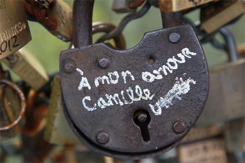 thông điệp tình yêu lên thành cầu trước khi ném chìa xuống sông.