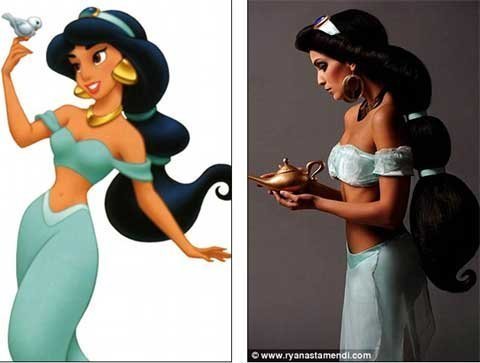 Hiện giờ, nhờ kỹ xảo của nhiếp ảnh gia kiêm họa sĩ nhân vật Disney Ryan Astamendi, người Mỹ, các vẻ đẹp đó đã được đem ra đời thực với những người đẹp bằng xương bằng thịt.