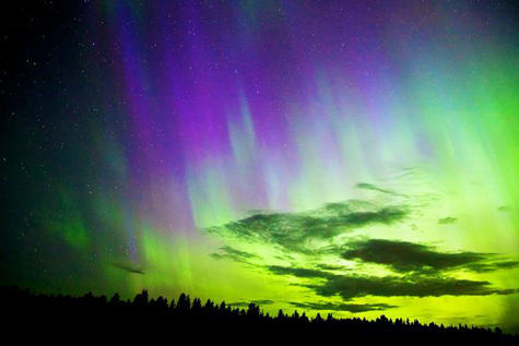 Một chùm electron siêu năng lượng phát nổ xâm nhập vào khí quyển đi xuống phía nam xa hơn thường lệ, đập vào khí ni-tơ và khiến cho không khí phát sáng màu hồng và tía ở Ba Lan.
