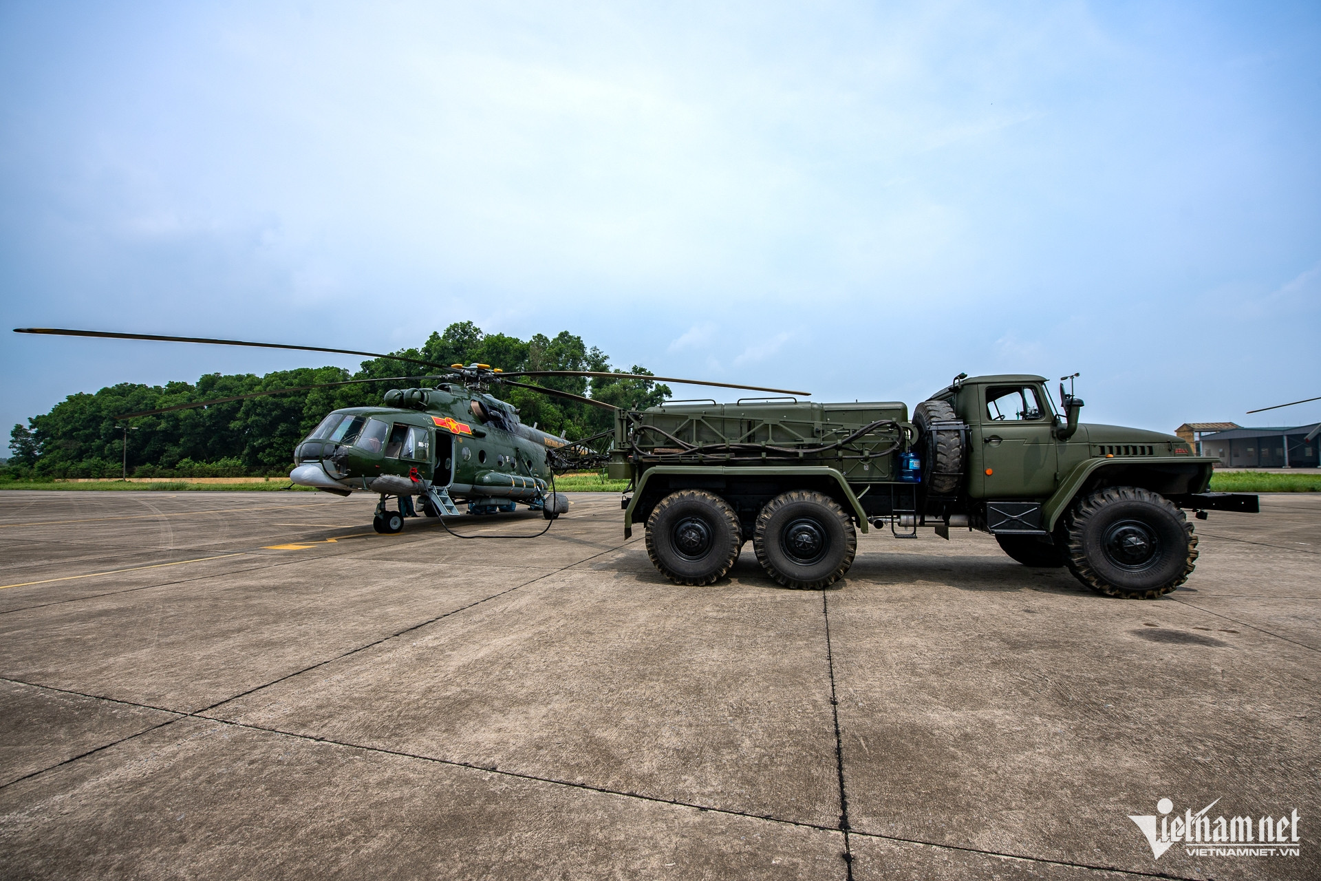 Trước giờ huấn luyện, các trực thăng Mi-8 và Mi-171 được đưa vào vị trí. Tổ bay phối hợp cùng đội ngũ kỹ thuật tiến hành kiểm tra toàn diện, từ động cơ, hệ thống điện, thông số kỹ thuật cho đến việc nạp đầy nhiên liệu, bảo đảm mỗi chiếc trực thăng đạt trạng thái tốt nhất trước khi cất cánh.