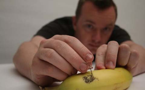 độc đáo trên chuối, thay vì trên da người như nghệ sĩ Nhật.