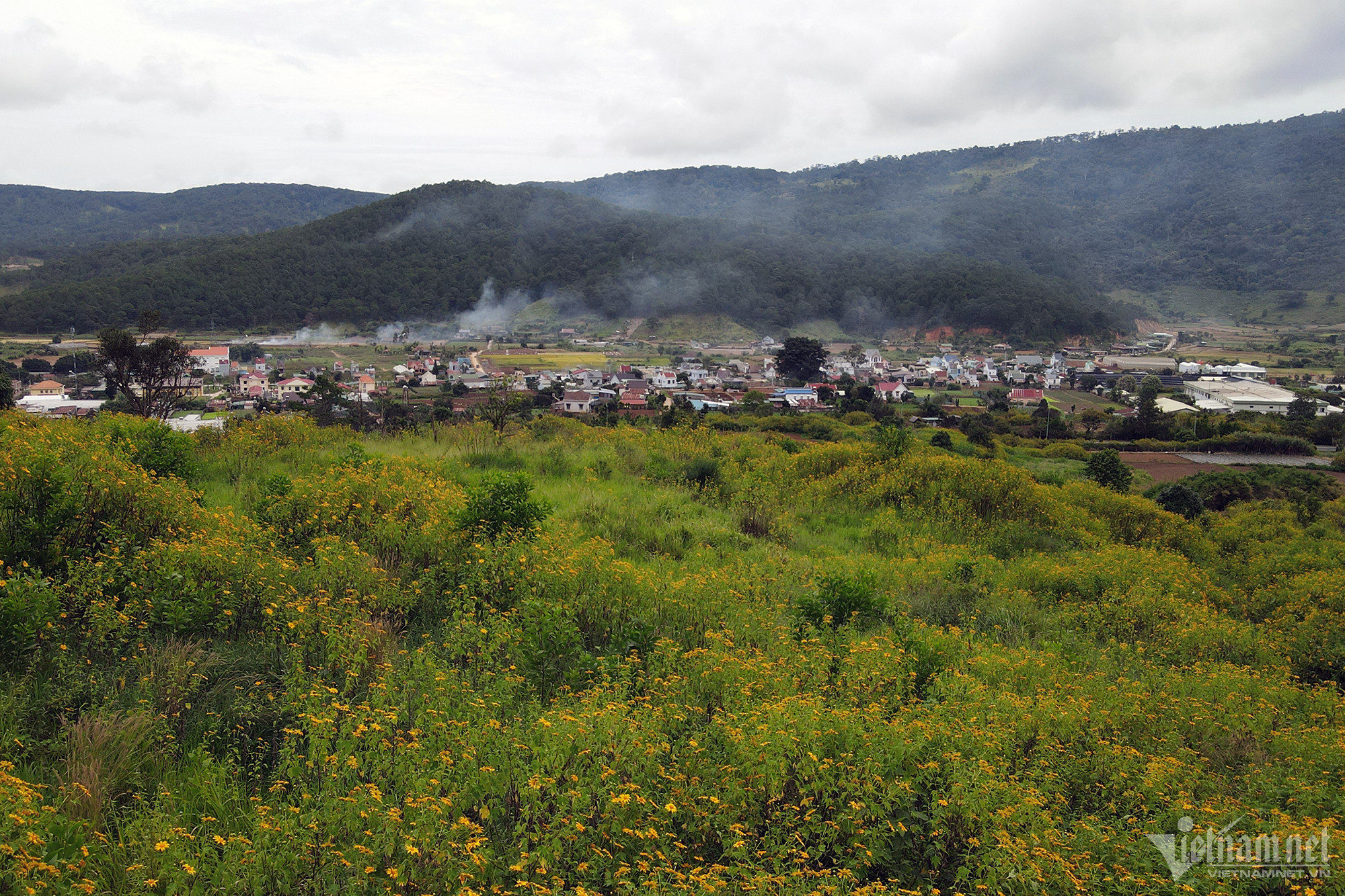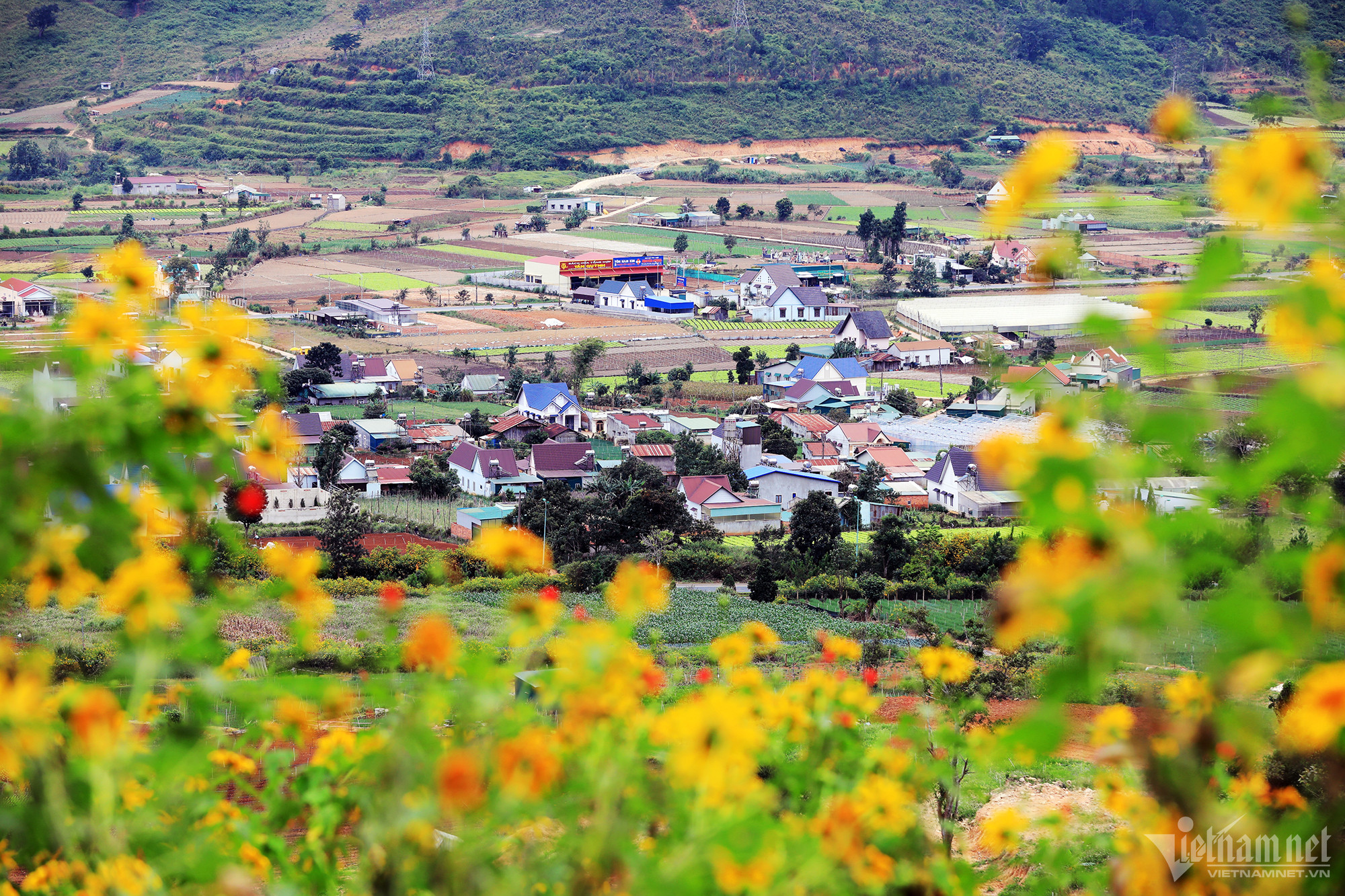 Dọc theo cung đường đèo Mimosa, hay qua khu du lịch Hồ Tuyền Lâm về hướng Định An, Đức Trọng, dễ dàng bắt gặp những bụi quỳ vàng rực rỡ ngay bên đường đi hay những thảm hoa lung linh bung nở trải dài trên các triền đồi, xen dưới những gốc thông già.