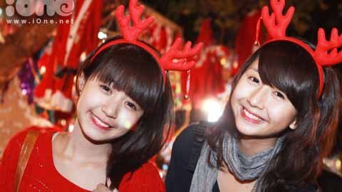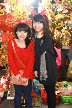 Quỳnh Anh - Mẫn Tiên tung tăng đi 'chợ Noel' (Ảnh: Ione) |