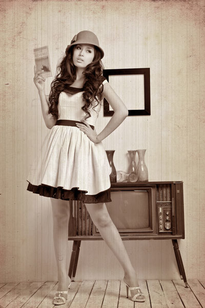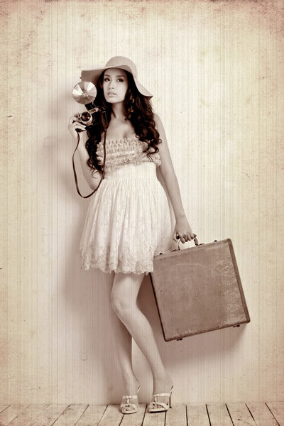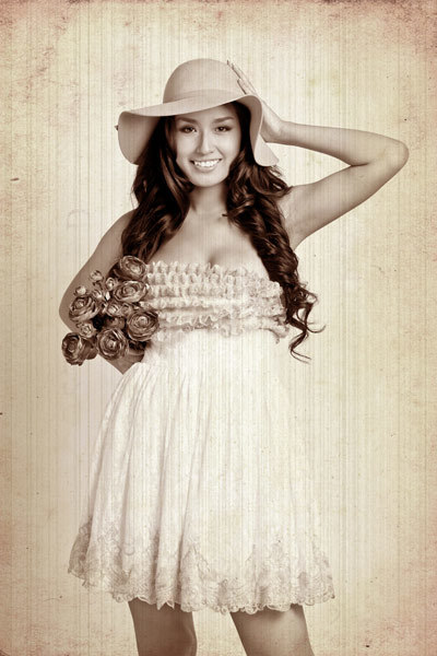 Trong chiếc váy ngắn màu trắng tinh khôi xếp nếp, cùng chiếc mũ rộng
