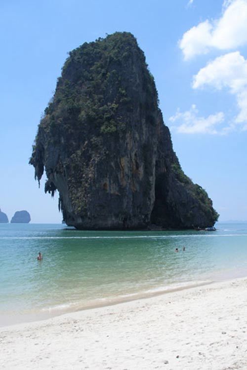 Bãi biển Railay ngoài những dải bờ rộng lớn, mềm mại còn có những núi đá rất đẹp. Du khách tới đây có thể tham gia trò leo núi đá.