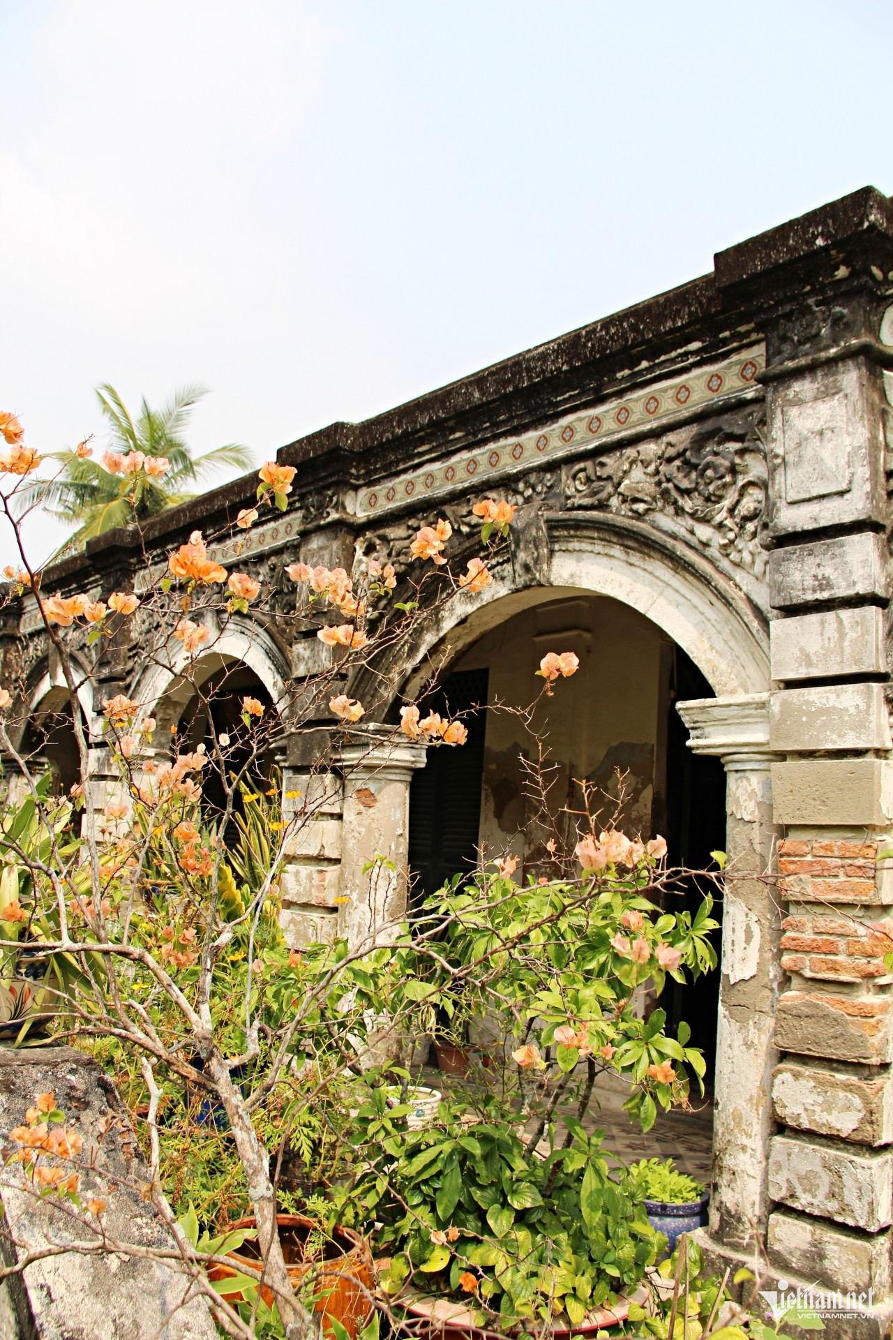Ngôi nhà có mái ngói âm dương nhuốm màu thời gian được bao bọc bởi hệ thống cột, cửa vòm bằng gạch, xi măng.