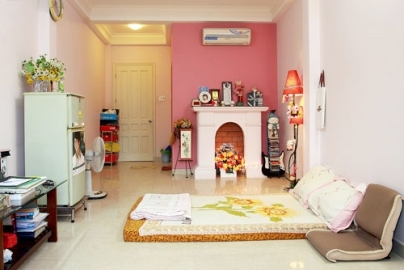 Tầng 2 được anh bố trí phòng ngủ với phong cách thật giản dị. Tiện dụng và thoải mái là tiêu chí đầu tiên khi anh thiết kế trang trí cho chốn riêng. Nhiều người ngạc nhiên khi anh chọn màu hồng cho căn phòng. Anh giải thích, lý do đơn giản vì khi chọn màu sơn, mấy dì và mẹ thích màu hồng nên chọn sơn cho cả ngôi nhà. Phòng của anh là con trai duy nhất trong nhà cũng bị ảnh hưởng.