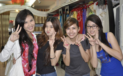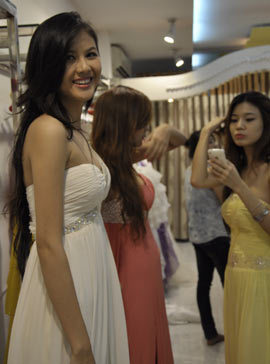 Dưới đây là hình ảnh các người đẹp Anh đào trong phòng thử trang phục áo dài và dạ hội.