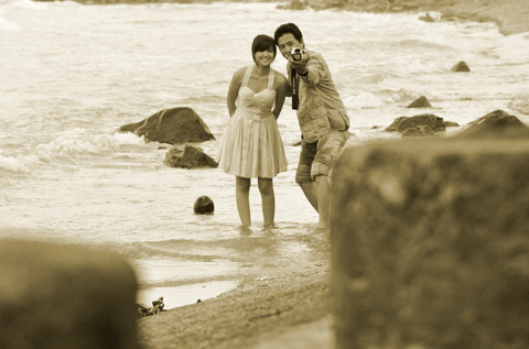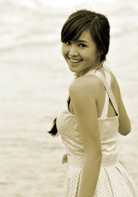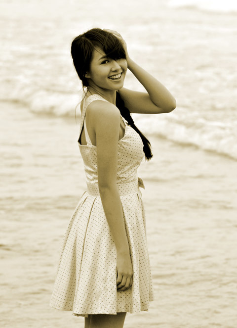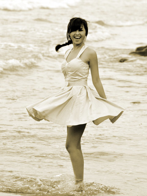 Hot girl Tâm Tít sinh năm 1990, khoe vẻ thanh xuân bên bờ biển Bãi Sau lãng mạn của thành phố Vũng Tàu. Theo sát cô là một người đàn ông ga lăng, sẵn lòng xắn quần lội xuống nước để làm phó nháy cho người đẹp.