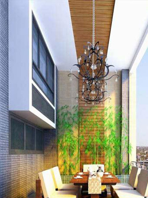 | Ban công với một chút màu xanh của cây và bộ bàn ghế cho vợ chồng Đại S không