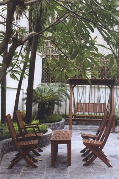 | Khoảng sân vườn trước nhà lại là nơi Khắc Triệu yêu thích nhất bởi anh có thể nghỉ ngơi nhâm nhi ly cà phê mỗi sáng hoặc mỗi tối. Anh thích tiếp đón những bạn bè thân ở nơi này. Những câu chuyện sẽ trở nên thật thoải mái biết bao giữa cây cối và gió, nắng trời (Ảnh: phununet) |