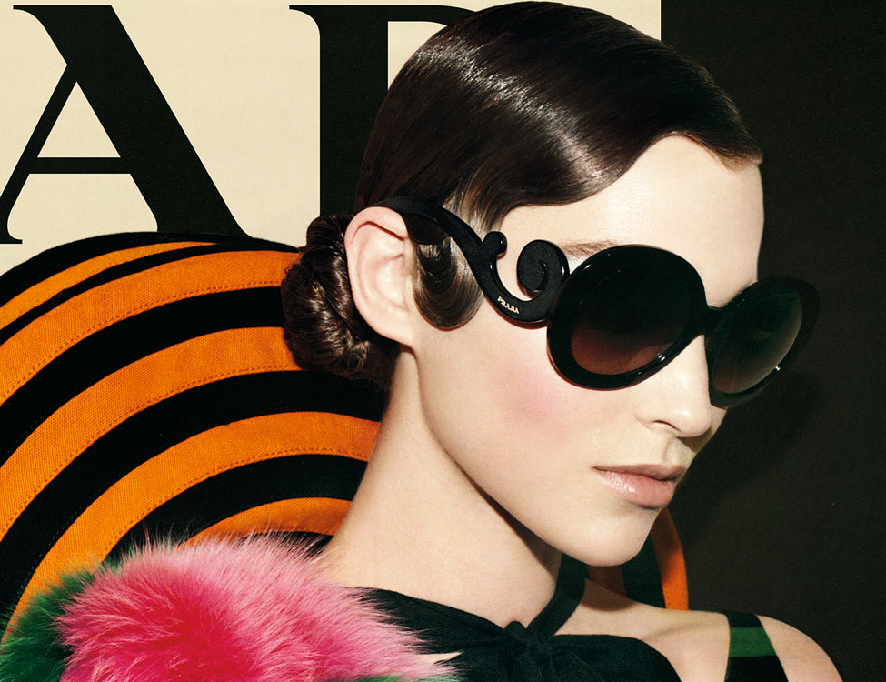 Dòng kính nổi tiếng Prada Minimal Baroque trên trang bìa của tạp chí thời trang nổi tiếng.