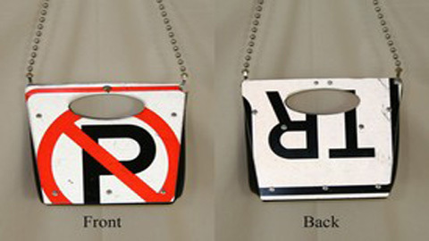 Mặt trước và sau của một chiếc túi được lấy ý tưởng từ biển báo giao thông. (Nguồn: Oddee)