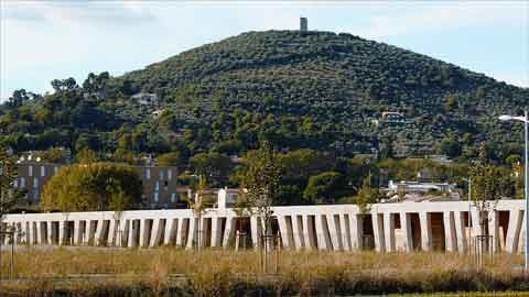 Thiết kế của ngôi trường Ecole Internationale de Manosque hài hòa với môi trường xung quanh. Những cái cột của ngôi trường này được xây dựa vào những ngọn đồi của Provence, Pháp. (Ảnh: AREA)