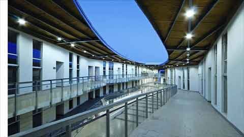 Những đường dốc chạy vòng quanh sân liên kết tất cả các phòng ở trường Liceo Tecnico Profesional La Florida, Santiago, Chile. (Ảnh: Bộ Giáo dục Chile)