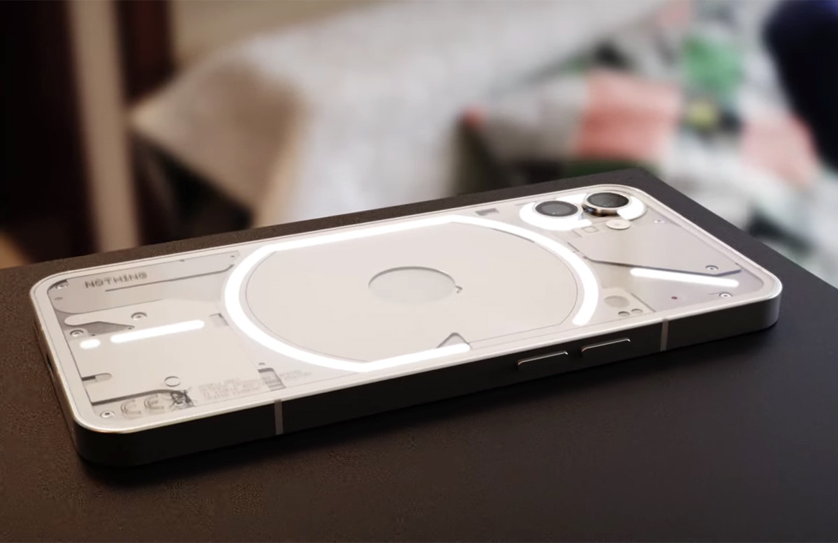 Nothing Phone (1) có thiết kế mặt lưng trong suốt, để lộ phần linh kiện bên trong máy. Cũng vì thiết kế xuyên thấu mà hệ thống đèn LED thông báo ở mặt lưng gồm 900 bóng hoạt động độc lập được xem là điểm nhấn đặc sắc. Người dùng có thể thiết lập các dải đèn LED này tùy ý trong phần cài đặt.