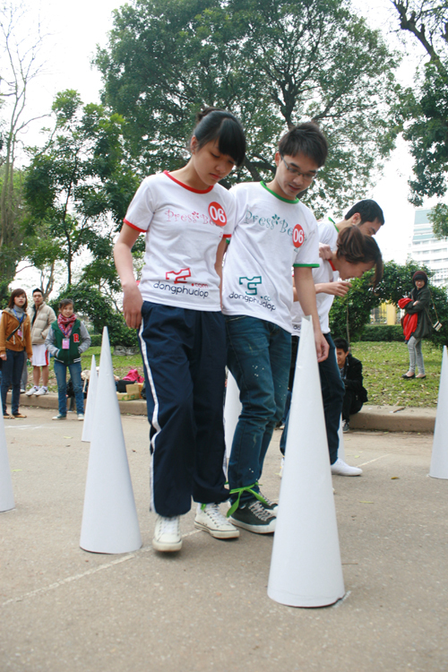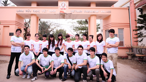 Các thí sinh chụp hình lưu niệm tại làng hữu nghị Việt Nam |