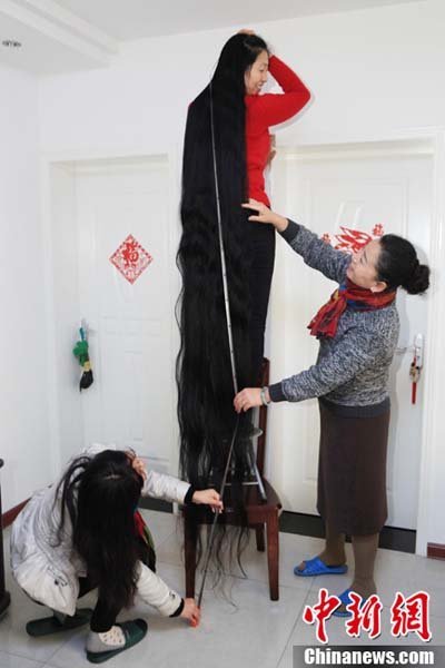 Được biết, chị Nghê Lâm Mai (thành phố Thái Nguyên, tỉnh Sơn Tây, Trung Quốc) đã không cắt tóc suốt 14 năm qua và tới nay mái tóc của chị đã dài tới 2,53 m. Với mái tóc mỗi ngày dài thêm 3,3 cm này , chị Nghê hy vọng được ghi danh vào sách kỷ lục Guinness cũng như tham gia các cuộc thi về tóc.