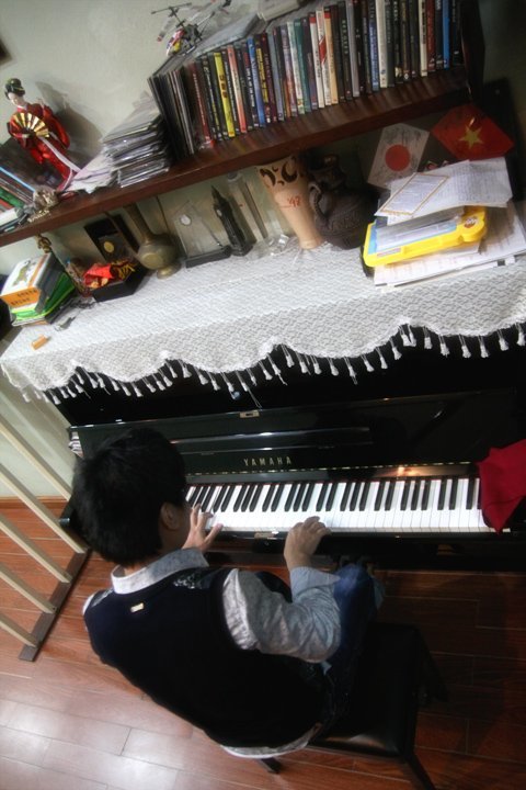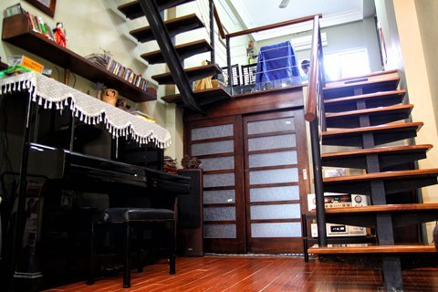 Ngay bên bên cạnh phòng khách là nơi mà chúng tôi gọi là "Không gian âm nhạc" với sự có mặt của một chiếc piano và bộ dàn âm thanh.