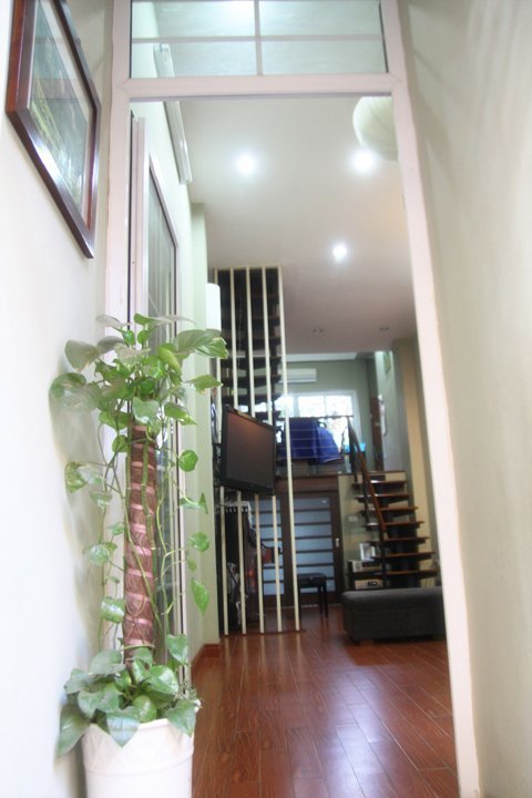 Căn nhà có bề rộng không quá lớn nhưng lại khá sâu. Đón chúng tôi ở cổng, ca sĩ Tấn Minh rào trước: "Nhà có trẻ con nên không được gọn gàng lắm, thông cảm nhé!"