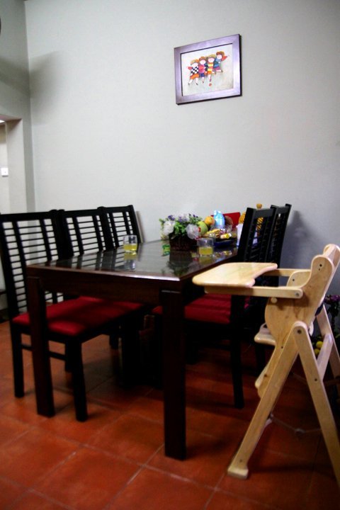 Bàn ăn, nơi gặp gỡ hàng ngày của Tấn Minh và Thu Huyền cùng các con.