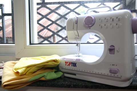 Ít ai biết Thu Huyền ngoài khả năng hát chèo còn đảm đang việc nhà, khâu vá rất giỏi. Tấn Minh bật mí: Vợ anh có thể tự may váy, đan khăn... rất khéo. Do vậy món quà sinh nhật anh tặng cho chị rất có ý nghĩa thiết thực. Trong ảnh là chiếc máy khâu, Tấn Minh tặng vợ sinh nhật năm qua.
