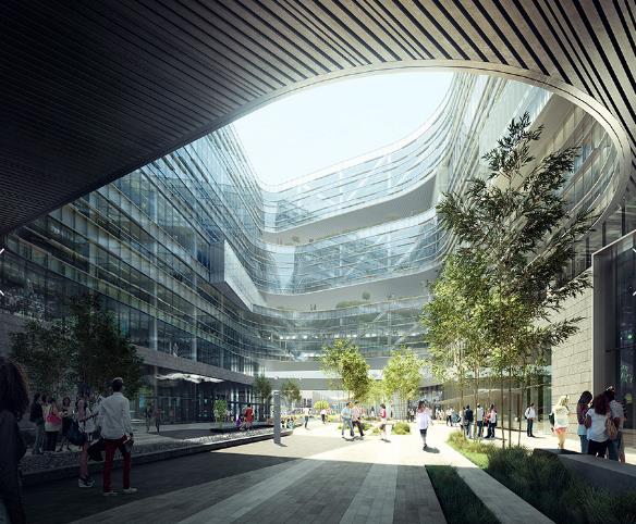 Công trình này do hãng kiến trúc NBBJ thiết kế. Chiến lược thiết kế mượn ý tưởng từ ngành khoa học thần kinh và các phân tích dữ liệu lớn (big data). Đây cũng là nhà thiết kế của tổ hợp văn phòng khổng lồ của Google, trụ sở của Amazon và các tòa nhà của hãng Tencent, Alipay của Trung Quốc.