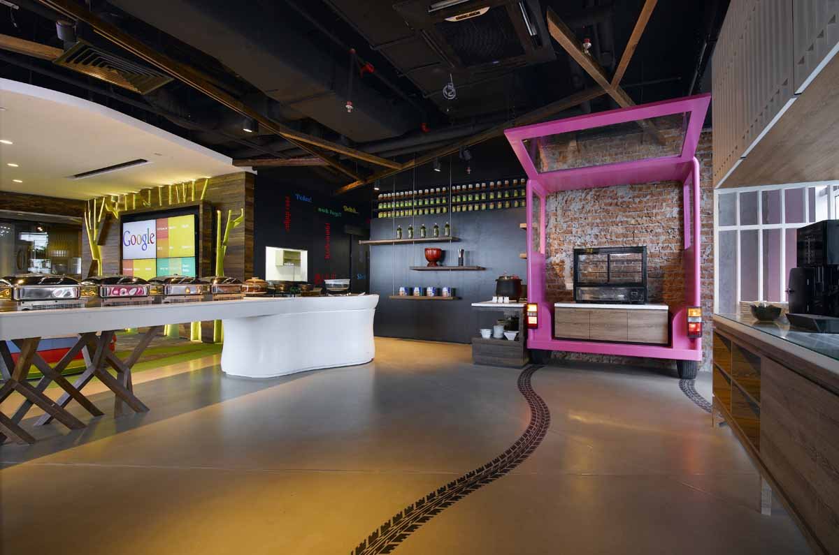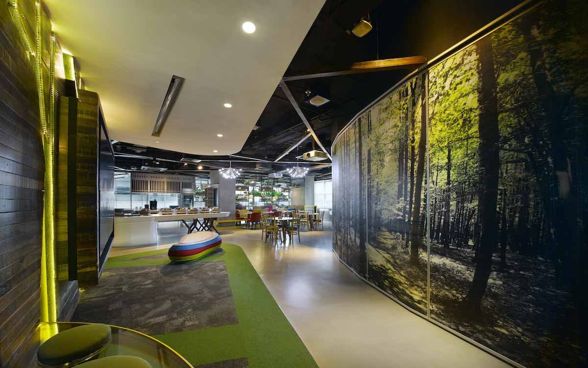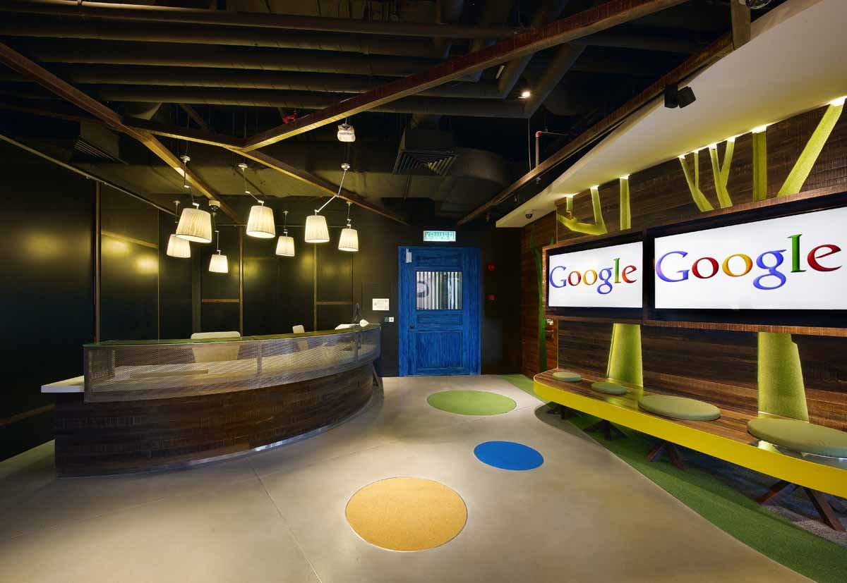 Từ các sân bóng rổ đến các tầng theo chủ đề, quán ăn miễn phí, Google luôn mang tới những điều mới mẻ, "điên rồ" cho không gian làm việc của mình. Văn phòng mới của gã khổng lồ tại Kuala Lumpur, Malaysia cũng không là ngoại lệ: cây mọc ra từ… trần nhà và tường, trong khi màu sắc trang trí rực rỡ khiến văn phòng trông như một ngôi đền độc đáo. Ngoài ra, còn có một phòng họp trông như hang động và cả đu quay trong khu vực ăn uống.