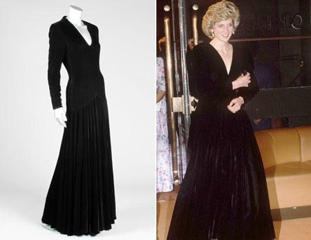 Bộ sưu tập bao gồm một chiếc áo choàng nhung màu xanh của Victor Edelstein được Công nương xứ Wales diện trong một bữa tiệc vào năm 1985 tại Nhà Trắng, nơi bà đã nhảy với nam diễn viên John Travolta.