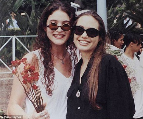 Angelina Jolie năm 14 tuổi, chụp ảnh trong lễ bế giảng lớp 8.