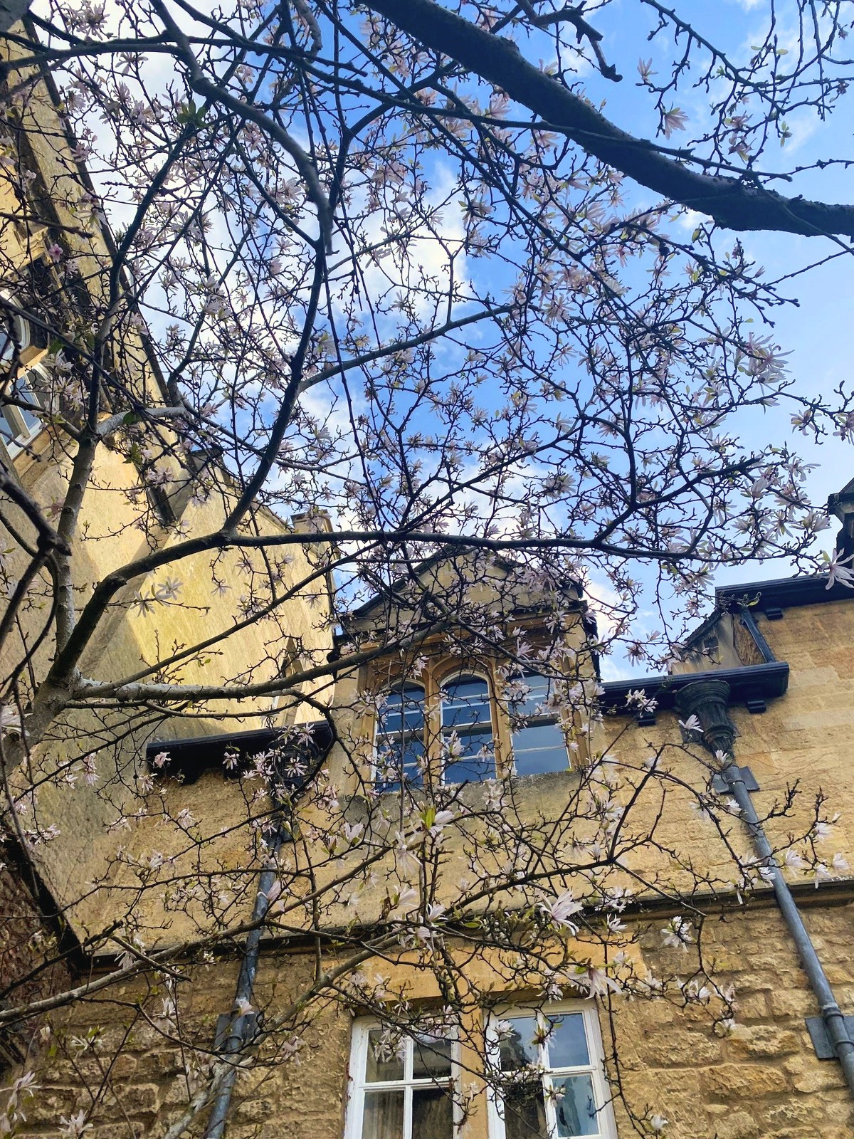 Khung cảnh hoa nở rộ, bầu trời xanh trong được chụp vào ngày cuối tháng 3/2023 tại ĐH Hertford. Dấu hiệu của mùa xuân ở khắp mọi nơi!