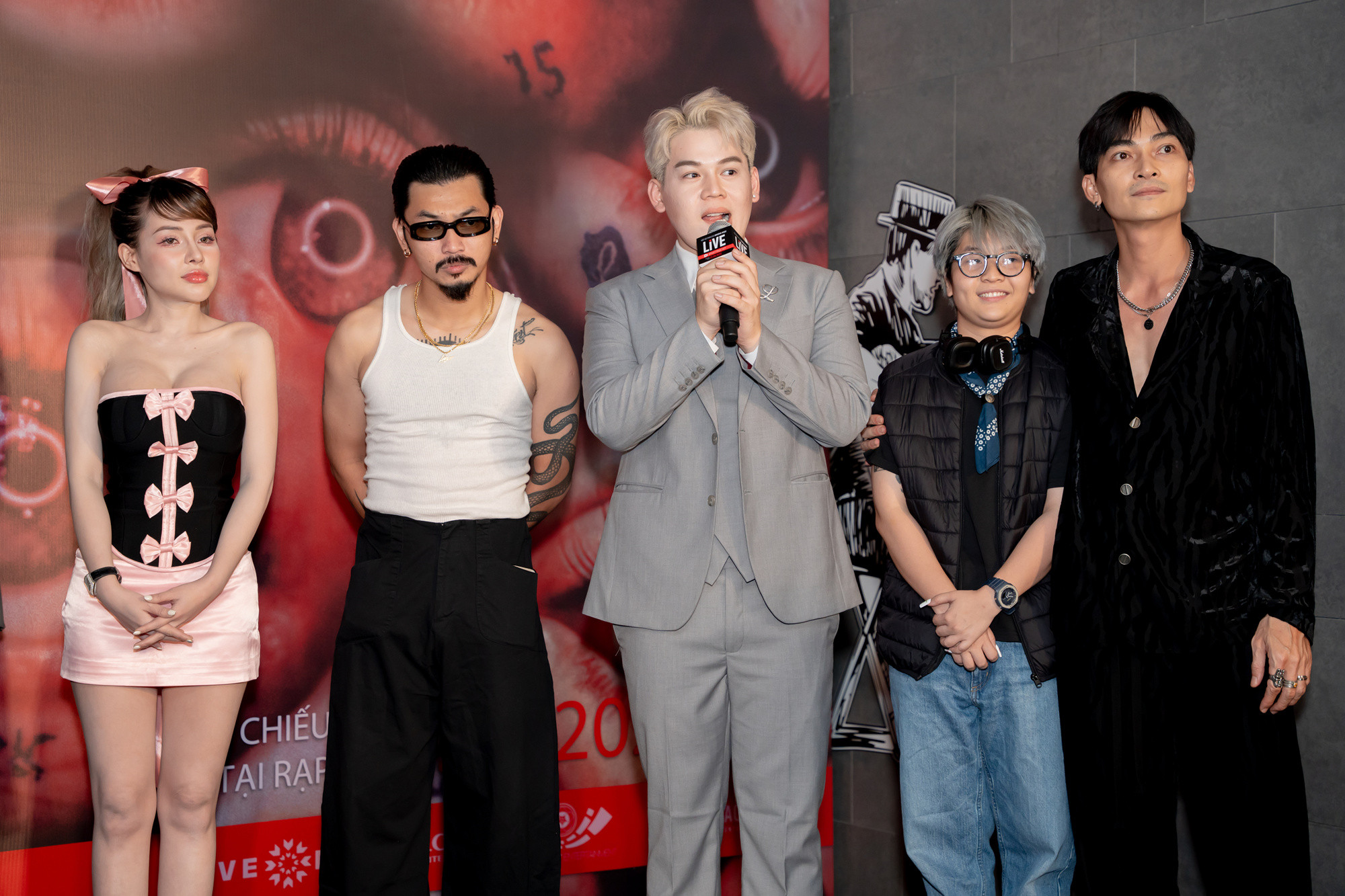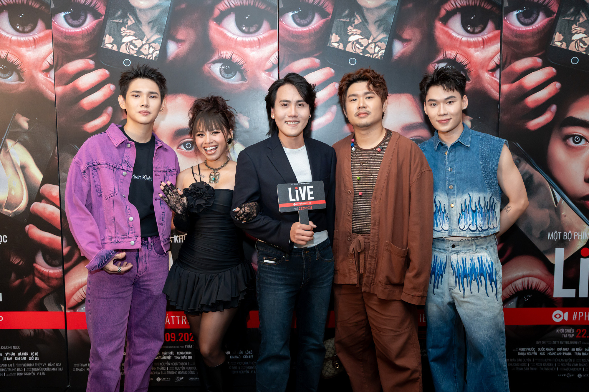 Buổi ra mắt phim "Live: Phát trực tiếp" diễn ra tại TP.HCM với dàn diễn viên Ngọc Phước, Quốc Khánh, Ngân 98, Khương Ngọc, Khả Như, BB Trần, Hải Triều và Long Chun.Diễn viên Quốc Khánh kể: "Lúc quay phim, đạo diễn Khương Ngọc hỏi tôi 'có ăn giòi được không'. Khi thấy 4 con giòi to béo trước mặt, tôi biết mình phải ăn thôi. Tôi ăn đến con thứ 3 mới hoàn thành cảnh quay". Một thành viên trong ê-kíp khẳng định với VietNamNet Quốc Khánh ăn giòi thật, không phải chia sẻ vui.Phim "Live: Phát trực tiếp" thể loại tâm lý được chuyển thể từ truyện ngắn trong tập “Đô thị linh dị” của tác giả Nguyễn Ngọc Thạch do Khương Ngọc đạo diễn. Phim phản ánh mặt trái của trào lưu Mukbang, hoạt động review và vấn nạn bạo lực mạng diễn ra ngày càng phổ biến.Đạo diễn Khương Ngọc sút cân nghiêm trọng, tiều tụy do dồn tâm huyết cho bộ phim. Trong buổi ra mắt, anh thể hiện ca khúc nhạc phim “Vạ miệng” tự sáng tác. Diễn viên Thu Trang mặc gợi cảm cùng ông xã - diễn viên Tiến Luật dự sự kiện.Siêu mẫu Võ Hoàng Yến tạo dáng hài hước bên diễn viên Ngọc Phước.Người đẹp Ngân 98 được bạn trai - nhạc sĩ Lương Bằng Quang tháp tùng. Trong phim, cô vào vai Emi - 'Nữ hoàng livestream' mới nổi. Quang Trung, Lý Hạo Mạnh Quỳnh đến mừng phim mới của đồng nghiệp thân thiết.Diễn viên Khả Như đọ sắc streamer Xoài Non. Người đẹp làng hài tham gia 1 vai nhỏ trong phim vì quan hệ thân tình với Khương Ngọc. Phim "Live: Phát trực tiếp" dành cho khán giả từ đủ 18 tuổi, công chiếu toàn quốc từ ngày 22/9.
