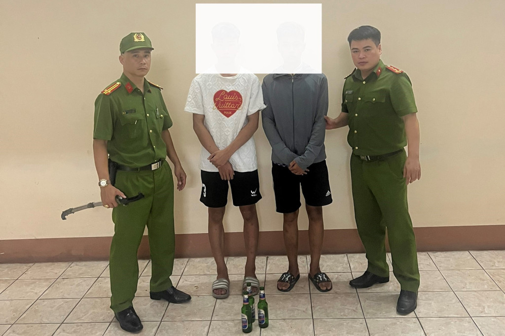 Tổ công tác đã truy đuổi và khống chế, bắt giữ được 2 đối tượng, thu giữ 1 xe máy không có biển kiểm soát, 1 thanh kiếm dài 40cm và nhiều chai lọ thủy tinh.