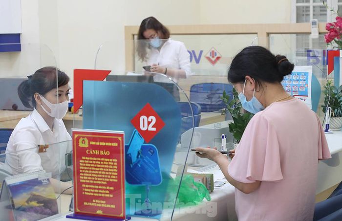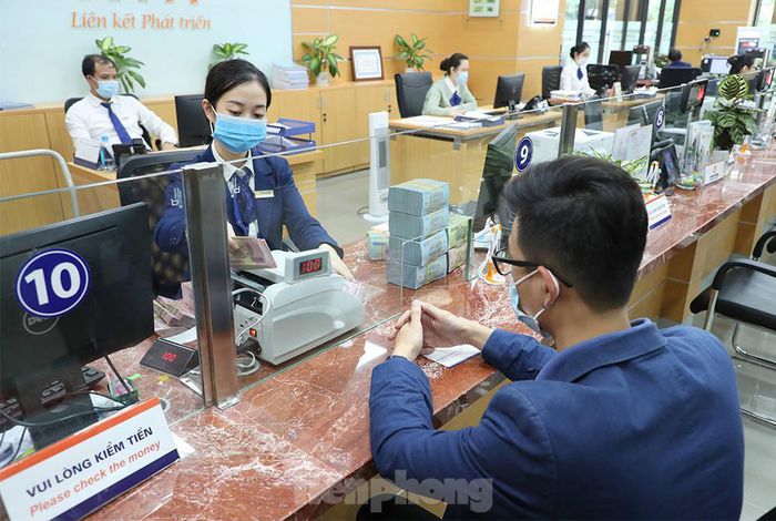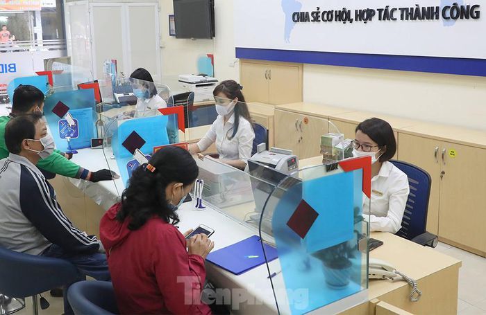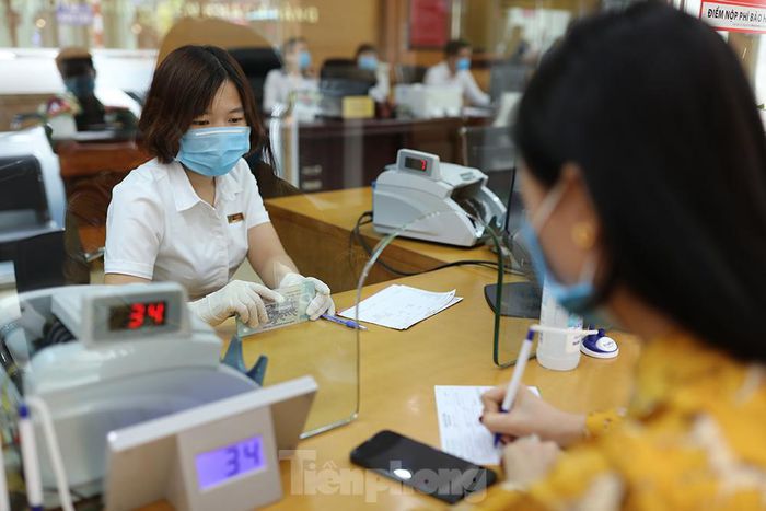 Tất cả khách hàng và nhân viên ngân hàng đều phải đeo khẩu trang khi thực hiện giao dịch.