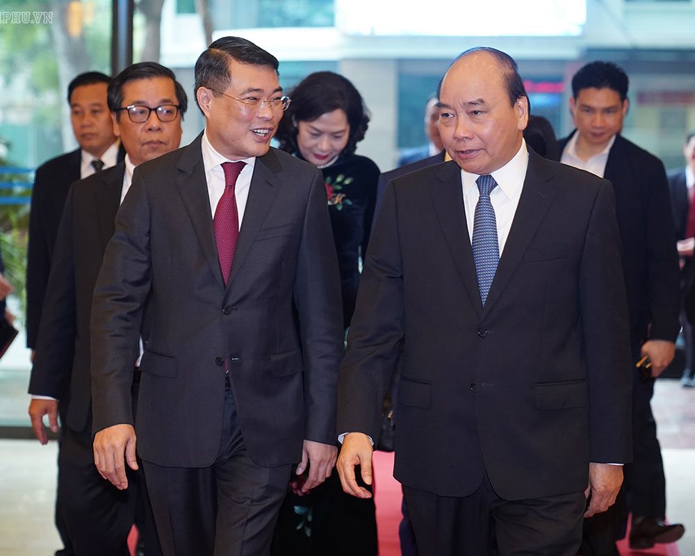 Đánh giá cao thành tích đạt được năm 2019 của ngành ngân hàng, Thủ tướng cho biết, trong bối cảnh thế giới, thị trường tài chính tiền tệ biến động, các nước phải nới lỏng chính sách tiền tệ thì NHNN đã thực hiện tốt các mục tiêu kiểm soát cung tiền, lãi suất, kiểm soát lạm phát ở mức thấp nhất trong 3 năm qua. Tỉ giá cơ bản ổn định. Mặt bằng lãi suất có xu hướng giảm là điểm sáng đáng ghi nhận. Tỉ lệ nợ xấu giảm. Dự trữ ngoại hối đạt gần 80 tỷ USD, gấp 2,5 lần từ đầu nhiệm kỳ và gấp gần 6 lần so với 2011. Trong năm qua, chúng ta bỏ ra 500 ngàn tỷ đồng để mua dự trữ ngoại hối, tăng cung tiền lớn như vậy nhưng vẫn kiểm soát được lạm phát.